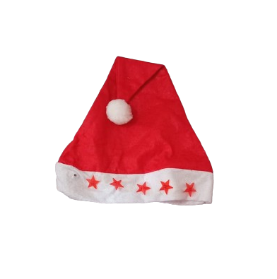 Chapeau du Père Noël rouge brillant et étoiles blanches د.م.12.00