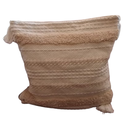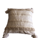 Coussin blanc à rayures blanches, pompons blancs