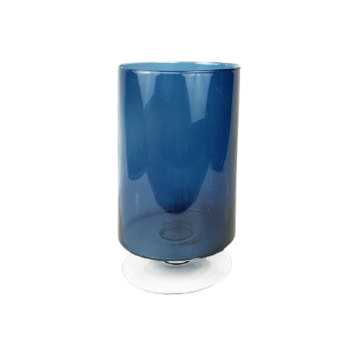 Photophore GM en verre bleu et pied en verre transparent