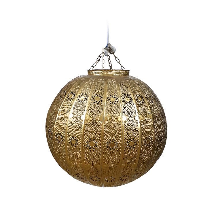 Suspension marocaine en tôle dorée, forme de boule – D 66cm