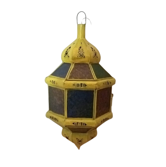 Accueil LUMINAIRE Lustre & Suspension Suspension marocaine, forme de losange et de couleur jaune
