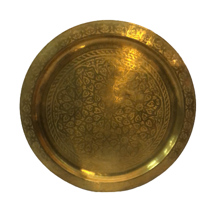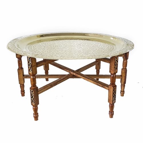 Table basse marocaine, piètement bois, plateau doré D 80cm د.م.100.00